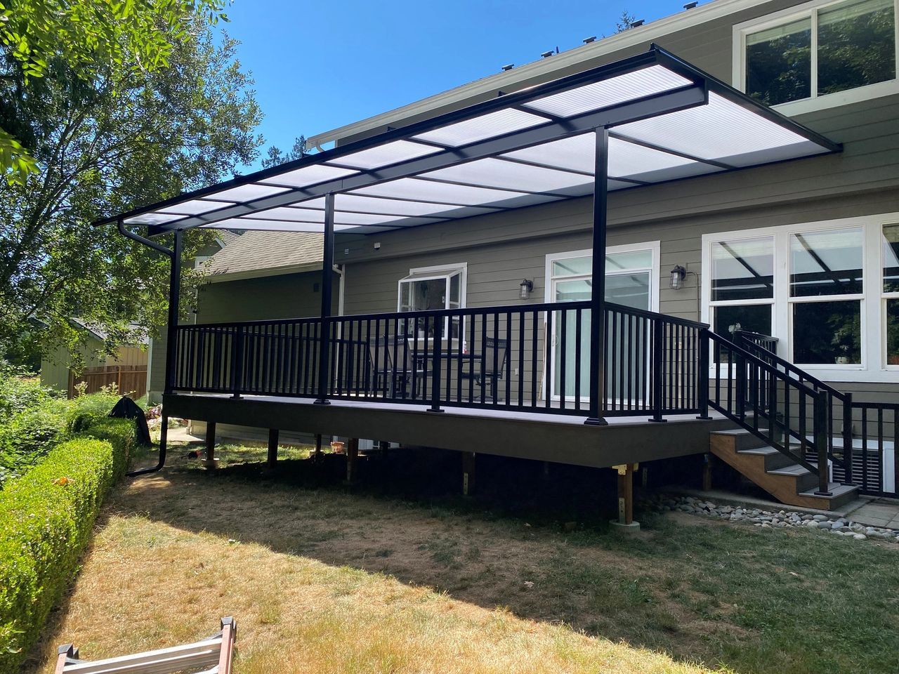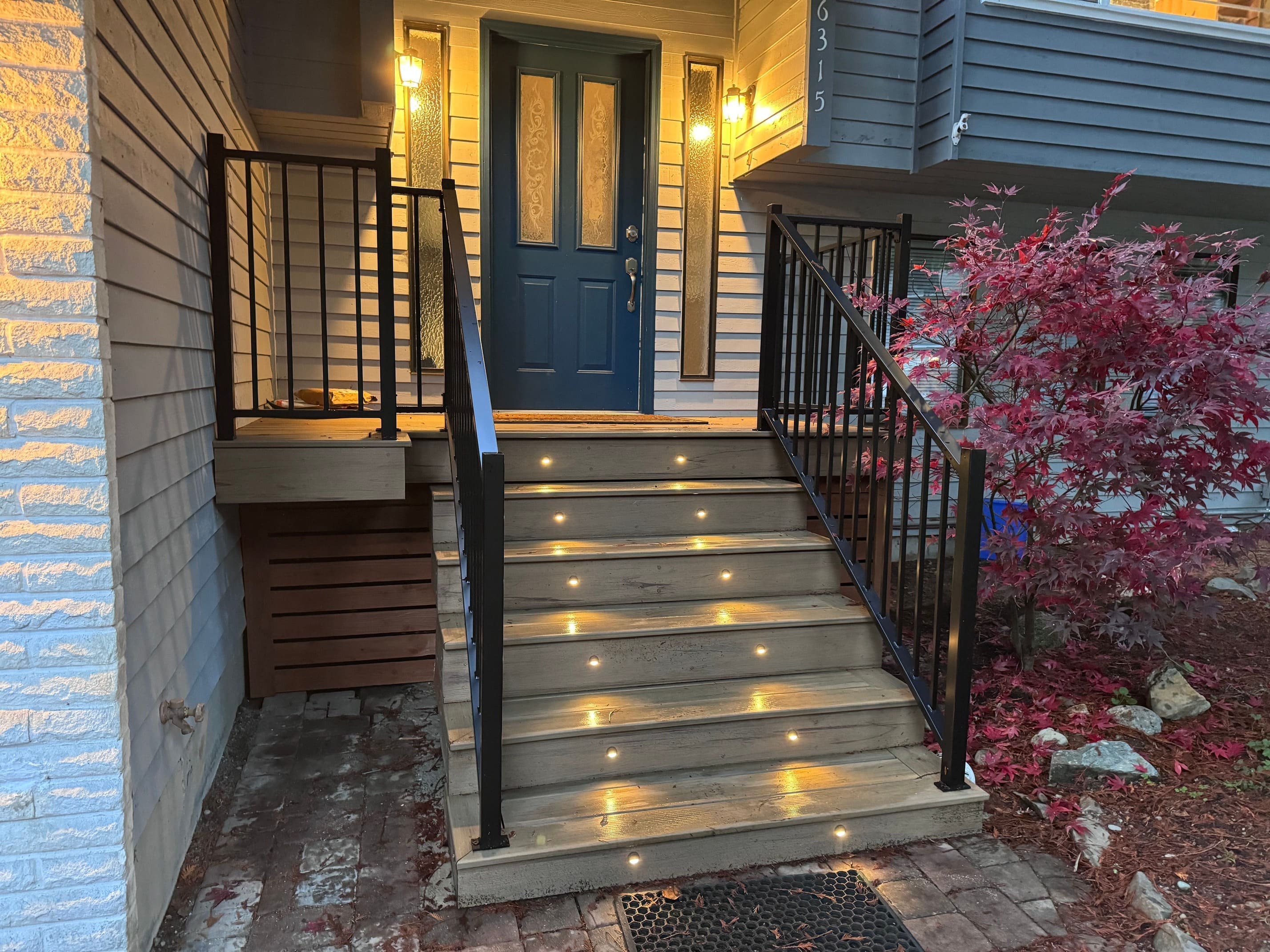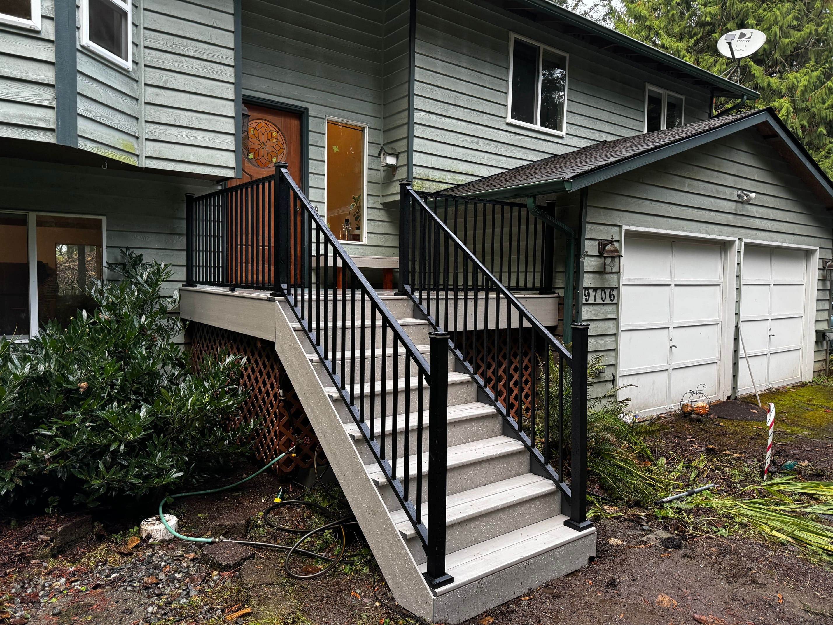 AZEK cypress and black aluminum handrails